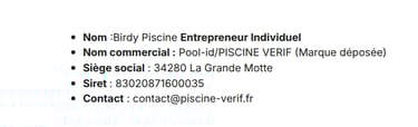Responsabilité de l'utilisateur : La fiabilité du rapport certifié dépend directement de la précision et de la véracité des données et photographies fournies par l'utilisateur. POOL ID IMMO ne saurait être tenu responsable en cas de fausse déclaration, d'omission ou de dissimulation d'un défaut par l'utilisateur.